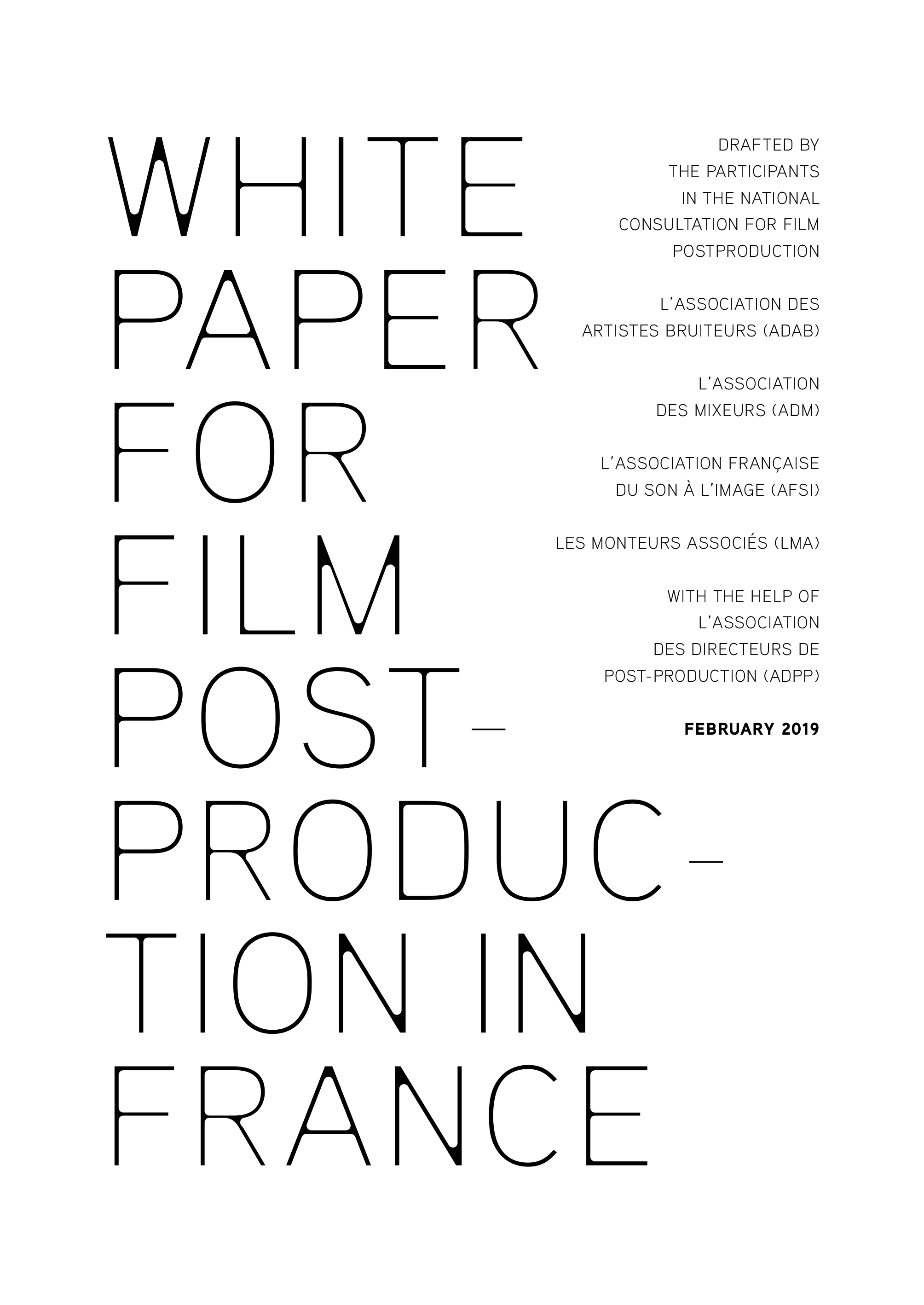 Cette traduction anglaise du Livre blanc de la post-production cinéma, réalisée grâce à l’aide de la CST (Commission supérieure technique de l’image et du son), était très attendue de nos collègues européens (et d’autres continents), tant les difficultés auxquelles nous sommes confrontées — la baisse des moyens matériels et humains et l’industrialisation de nos activités, entre autres — trouvent un écho au-delà nos frontières. Chacun pourra donc, abstraction faite de certaines particularités françaises, mettre en perspective ses propres usages et s’emparer des propositions de bonnes pratiques pour le montage et la post-production son développées dans le White Paper.